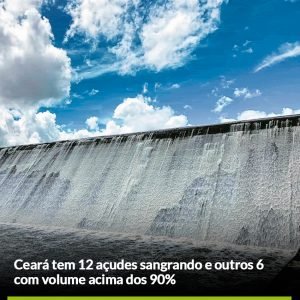 Chegou a 12 o número de açudes sangrando no Ceará neste domingo (1º), conforme observado no Portal Hidrológico da Companhia de Gestão dos Recursos Hídricos (Cogerh). Além destes, outros seis estão com o volume acima dos 90%.