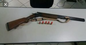 Os PMs falaram com um dos moradores da residência denunciada, identificado pelo nome A. S. S. L. e o mesmo autorizou os policiais a entrarem na casa e efetuarem uma vistoria, onde foram encontradas duas armas de fogo, sendo 01 espingarda calibre 12, numeração suprimida, 01 espingarda calibre 28, numeração 9280 e 02 cartuchos intactos de calibre 12.