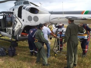 Criança é colocada em aeronave da Ciopaer para ser socorrida