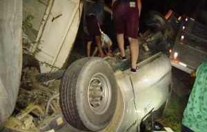 Em Jaguaribe, uma colisão seguida de capotamento entre um carro e uma carreta deixou dois mortos. O desastre aconteceu no quilômetro 309 da BR-116, na noite de sábado (11).