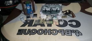 De posse das informações necessárias, diligências foram realizadas e o grupo foi detido. Com eles, dois revólveres calibre 38, oito munições intactas, uma prensa artesanal, 162 gramas de cocaína, dois gramas de maconha, diversos saquinhos para embalar drogas e uma quantia em dinheiro de R$ 50,00 foram encontrados. Diante dos fatos, os infratores foram levados para a unidade policial que cobre a região, onde foram autuados por tráfico de drogas e posse ilegal de arma de fogo.
