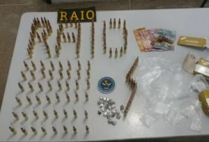 Dentro do apartamento, foram encontradas 23 trouxinhas de maconha, uma quantia em dinheiro e diversas embalagens plásticas utilizadas para acondicionar a droga. Com as capturas, os PMs identificaram outro endereço suspeito, no bairro Padre Andrade, em Fortaleza. Em diligência até o imóvel na Capital, os raianos de Caucaia, com apoio de equipes do Raio de Fortaleza, localizaram 143 munições novas, não deflagradas, de fuzil calibre 762, escondidas em cima de um guarda-roupa. Diante dos fatos e das provas encontradas, os raianos conduziram o trio para o plantão da Delegacia Metropolitana de Caucaia.