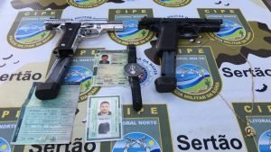 Com os criminosos, os policiais encontraram duas pistolas de calibre Ponto 40, munição e outros objetos de crimes, que foram apreendidos.