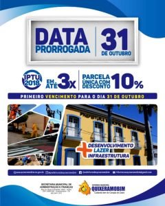 IPTU 2018, você investe em Quixeramobim, Quixeramobim investe em você!