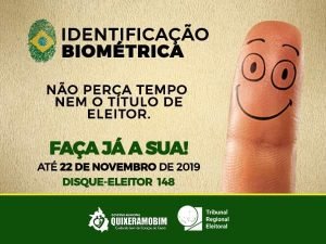 Em Quixeramobim o recadastramento biométrico já começou. O eleitor tem até o dia 22 de novembro de 2019 para realizar o serviço QUE É OBRIGATÓRIO e implica no cancelamento do título. O atendimento acontece de segunda a sexta-feira, no horário das 8h às 17h. Mesmo os eleitores com voto facultativo – menores com idade entre 16 e 17 anos e maiores de 70 anos de idade – deveriam comparecer se desejarem continuar votando e para evitar transtornos causados pelo cancelamento dos seus títulos de eleitor. Para quem desejar, o agendamento pode ser marcado através do site do TRE-CE ou pelo número 148.
