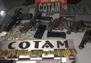 Em seguida, os policiais se deslocaram ao endereço do terceiro homem, mas ao chegar lá foram recebidos à bala. A patrulha revidou, se estabelecendo um tiroteio, onde o traficante foi ferido e recebeu voz de prisão. Dentro da casa de “Bocão”, a Polícia encontrou um revólver de calibre 38, uma pistola, munições, drogas, além de um simulacro de pistola.