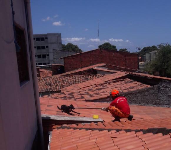 Bombeiros resgatam cão de telhado no bairro Jangurussu em Fortaleza