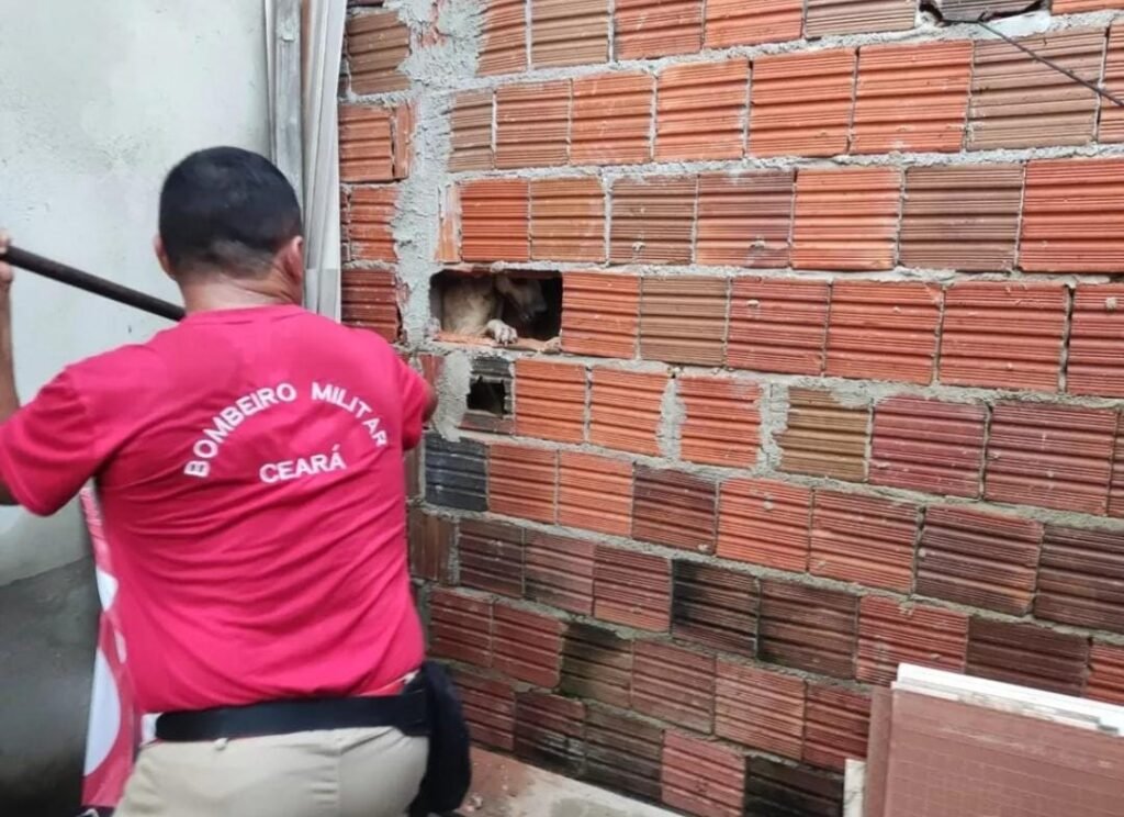 O Corpo de Bombeiros resgatou um cão que estava preso entre as paredes de duas residências no Bairro Conjunto Esperança, em Quixeramobim, no sertão central, na tarde deste domingo (8). O animal não ficou ferido.