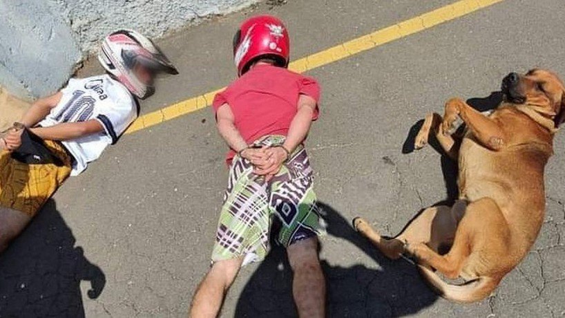 Segundo o policial Tiago Wendrechoviski, ao ver os homens sendo revistados no chão, o cão de rua se solidarizou: deitou e encolheu as patas.