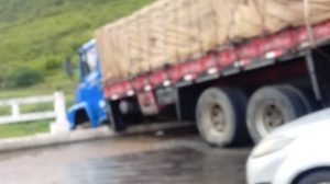 Caminhão fica preso na parede da barragem de Quixeramobim após perder o controle