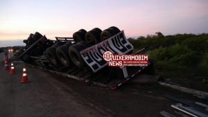 Na noite desta segunda-feira, dia 27/05/2019, por volta das 20h00min, a equipe da viatura R10 foi acionada para averiguar a informação de que um veículo havia tombado na CE – 138, a cerca de 7km do centro de Morada Nova – CE. No local, a composição confirmou que o condutor estava conduzindo o veículo M.BENZ/ATRON 2324 – 2014/2014, de Itabaiana – SE, quando tombou. O motorista disse que perdeu o controle ao desviar de um buraco.