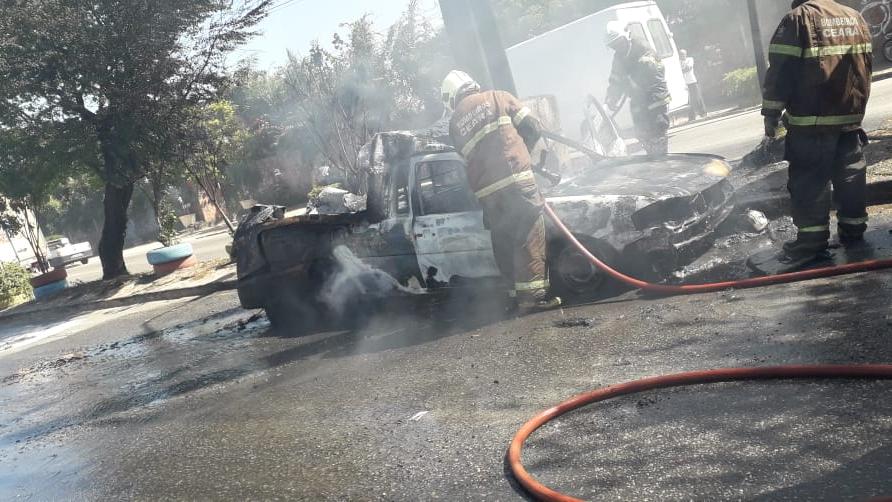 Carro funerário tem pane elétrica e pega fogo em avenida do bairro José Walter
