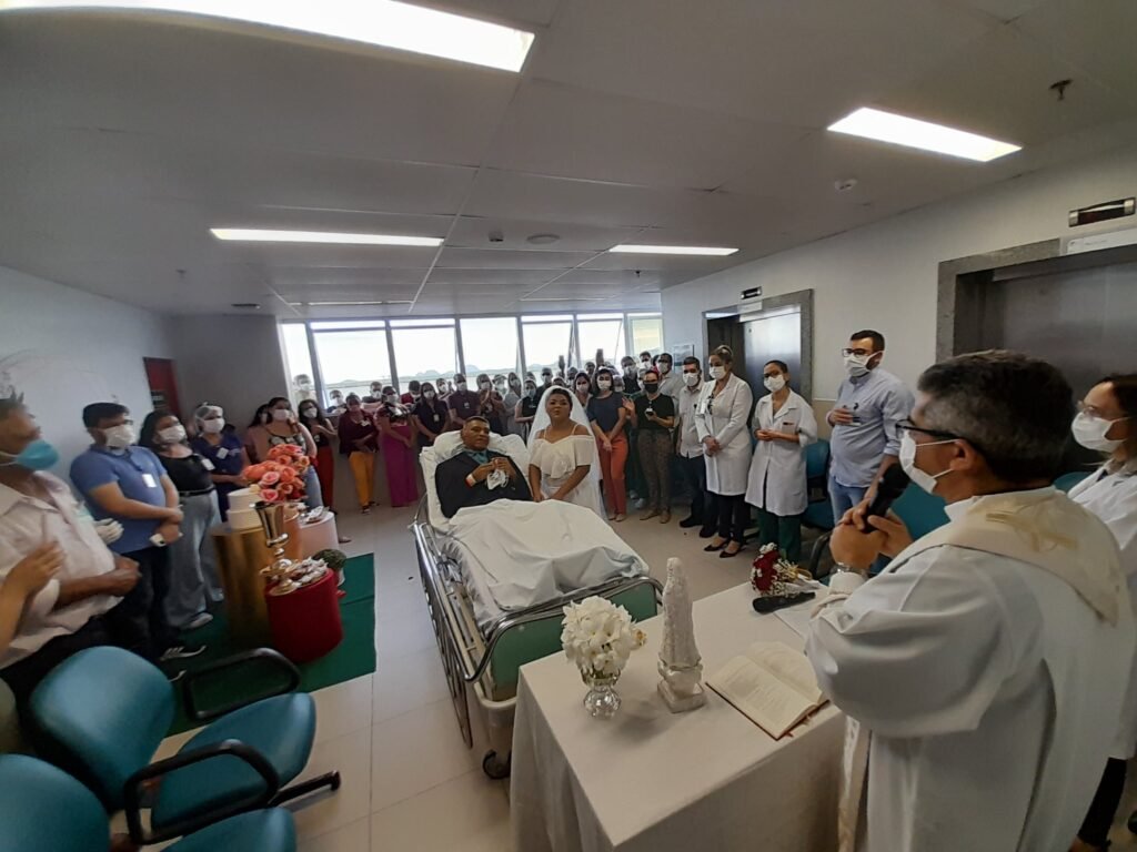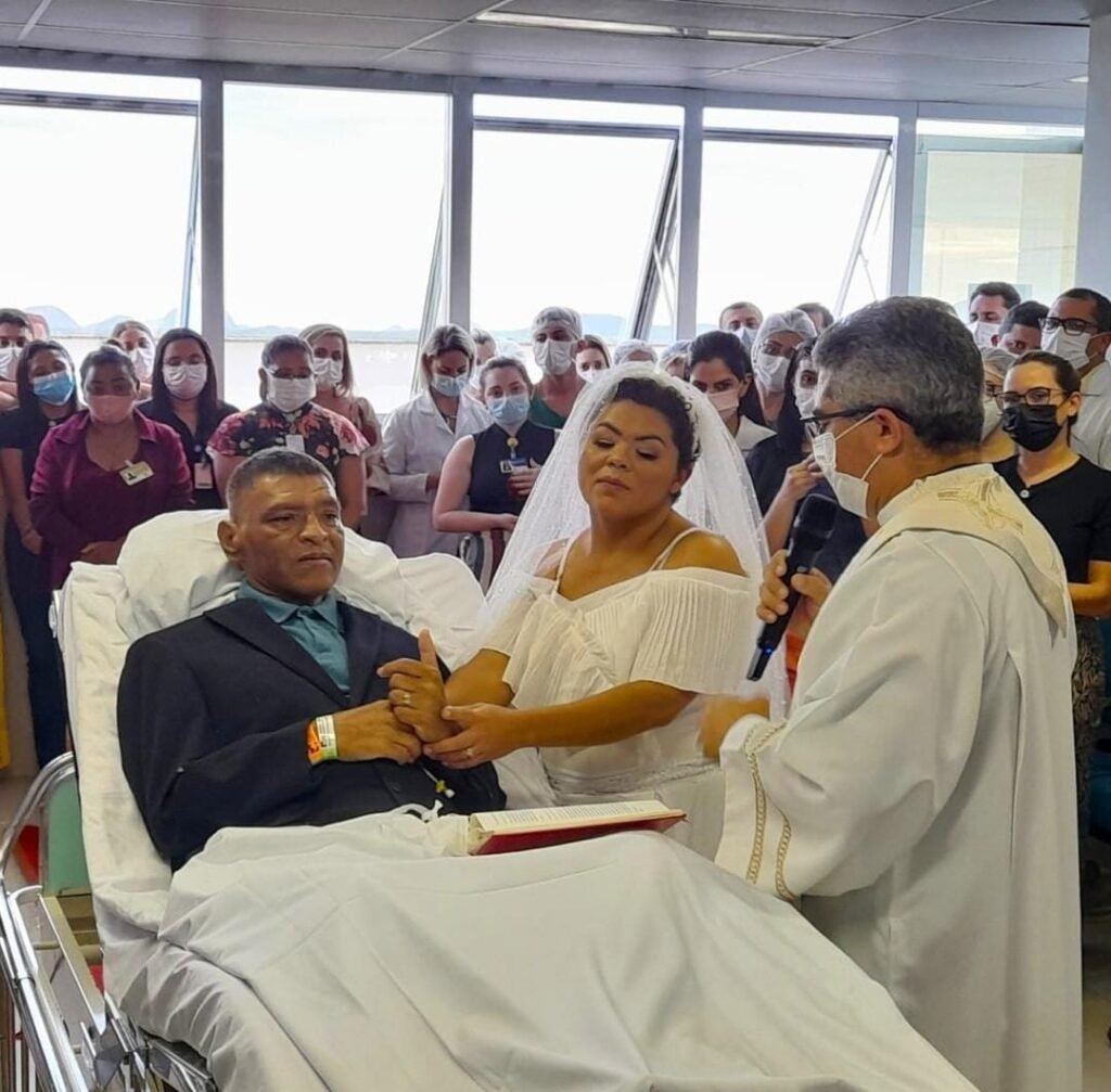 O amor e a felicidade tomaram conta do Hospital Regional do Sertão Central (HRSC), em Quixeramobim (Sesa), unidade da Secretaria da Saúde do Ceará. Internado há três meses na Unidade de Cuidados Especiais (UCE), em cuidados paliativos, o paciente Francisco Antônio Alves de Abreu, 48 anos, e Cristiane Silva Mendes, 36 anos, casaram-se na tarde desta terça-feira (19) sob os olhares atentos de familiares e colaboradores do hospital.