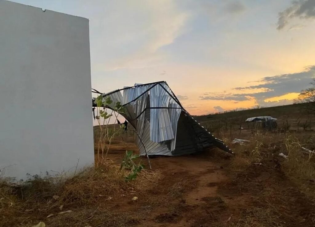 Na fazenda Angico, três galpões ficaram bastante danificados e uma casa, totalmente destelhada. A proprietária disse que, no momento da chuva, só havia dois vaqueiros no local, mas ninguém se feriu.