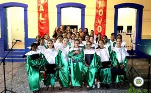 Coral Aníbal Roberto, composto por alunos da Escola de Ensino Fundamental Zilá Carneiro, realiza apresentação Paço Municipal