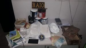 No local, a PM encontrou uma mala em um dos quartos, onde foram encontrados mais materiais. No total, foram apreendidos 1,5 quilo de cocaína, pouco mais de um quilo de crack, balanças de precisão, caderno com anotações, dinheiro e outros materiais.Elinaldo foi conduzido para a Delegacia Regional de Juazeiro do Norte, onde foi autuado em flagrante por tráfico de drogas.