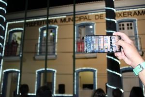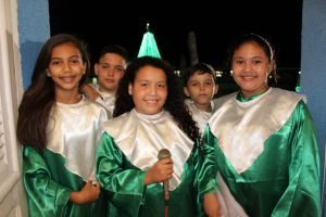 Crianças do coral Aníbal Roberto Carneiro participam do 1° concerto Natalino no prédio da Prefeitura em Quixeramobim