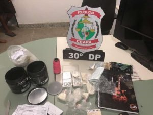 Dois homens presos, drogas, balanças de precisão e outros objetos utilizados em atividades criminosas foram apreendidos, na tarde desta terça-feira (28) no bairro Conjunto Palmeiras, Área Integrada de Segurança 3 (AIS 3). Esse foi o resultado da ação realizada por equipes da Polícia Civil do Estado do Ceará (PCCE), por meio 30º Distrito Policial (DP). O caso foi levado para a unidade policial que fica no Jangurussu, onde o flagrante foi realizado.