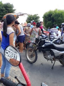 A equipe da viatura R 031 foi acionada para atender a ocorrência, onde ao chegar comprovou a veracidade da informação. O condutor da motocicleta se trata de A. V. S. G., que foi conduzido para o Hospital Regional Dr. Pontes Neto, para receber atendimento médico. A garupeira da moto foi identificada como I. A.. A., que sofreu uma lesão no fêmur direito e também foi levada para o Hospital Regional Dr. Pontes Neto. Já o condutor do carro, o Sr. R. F. B., foi conduzido para a Delegacia de Polícia Civil do Município de Quixeramobim-Ce, para serem tomadas as medidas cabíveis e os veículos foram conduzidos pelos Agentes de Trânsito para a sede da Autarquia Municipal de Trânsito.