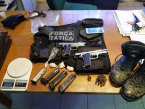 Duas armas de fogo foram apreendidas por uma composição da Força Tática da Polícia Militar do Ceará (PMCE), na tarde desta quinta-feira (16), na cidade de Maranguape – Área Integrada de Segurança 12 (AIS 12) do Ceará. Alan Lennon Barbosa Fernandes (26) foi preso em posse do material, que foi levado à Delegacia Metropolitana da cidade. Durante a ação, foram apreendidos ainda carregadores e uma capa tática de colete balístico.