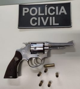 Em patrulhamento pelo bairro Vila Neuma, os agentes de segurança foram acionados para verificar uma denúncia anônima sobre indivíduos em posse de arma de fogo. Quando chegaram à Rua São Gabriel, os policiais civis encontraram Micailton Vieira Gomes (21), com passagens por roubo, e um adolescente de 15 anos, que responde a atos infracionais por homicídio doloso, tentativa de homicídio, tráfico de drogas, roubo e posse irregular de arma de fogo.