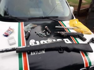 Dois homens, ambos foragidos da Justiça, foram capturados, nesse domingo (17), após uma denúncia repassada à Polícia Militar do Ceará (PMCE), na Área Integrada de Segurança 15 (AIS 15). Os suspeitos foram capturados na cidade de Ocara, em posse de uma metralhadora artesanal. Ainda na ação, os policiais apreenderam outras duas armas de fogo, munições, entorpecentes e dinheiro no local. O flagrante foi realizado na Delegacia Regional de Baturité.