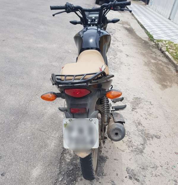A composição fazia patrulhamento pelas ruas do bairro, quando avistou dois homens em atitude suspeita. Foi dada ordem de parada para a realização da abordagem e os suspeitos desceram da motocicleta. O adulto, identificado como Gian Carlos Gomes Fernandes (24), sem antecedentes criminais, estava conduzindo a motocicleta que tinha registro de roubo. Já o adolescente de 14 anos portava um simulacro de pistola.