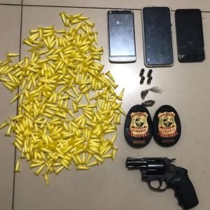 O suspeito que se encontrava com mandado de prisão preventiva por homicídio em aberto se tratava de Francisco Claudenilton Feitoza Salvino (22) – com antecedente criminal por receptação. Ele foi encontrado em uma residência no bairro Bom Acerto, em Milhã. Após uma busca no local, os policiais civis apreenderam um revólver calibre 38, com quatro munições, além de duas trouxinhas de maconha. Claudenilton estava na presença de sua namorada menor de idade.