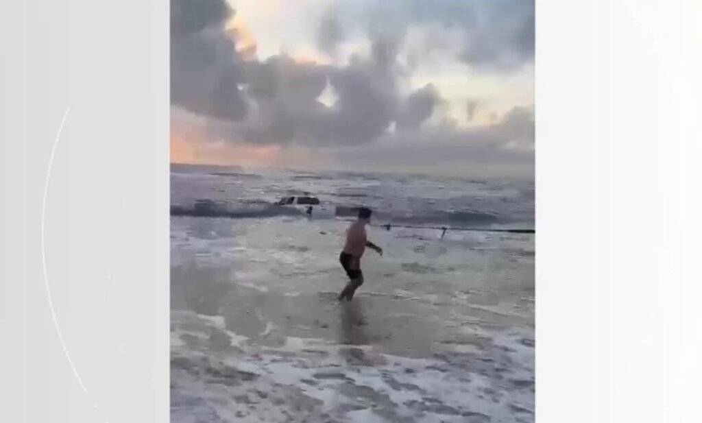 Empresário tem caminhonete furtada e encontra veículo atolado no mar em praia do Ceará