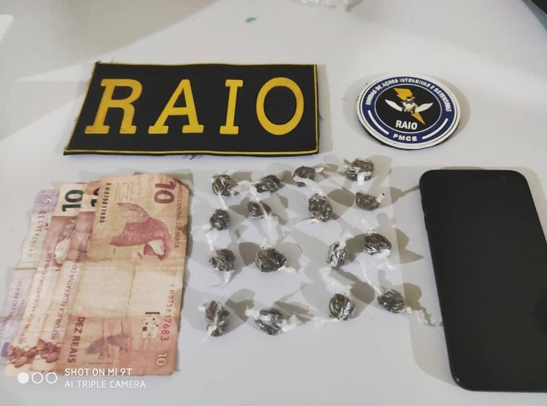 O meliante foi conduzido para a Delegacia Municipal de Pedra Branca junto com o material apreendido, onde foi flagranteado baseado no atr. 33 trafico de drogas. Vale ressaltar que o mesmo já responde a vários outros crimes, como porte ilegal de arma de fogo, Maria da Penha, posse de droga.