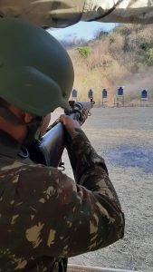 No terreno, participaram de instruções de camuflagem, orientação militar e ainda realizaram o tiro com armamento calibre 7,62.
