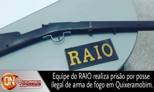 A equipe do RAIO 02 foi acionada para o local, e ao chegar, abordou o proprietário da residência e o identificou como sendo o motorista J. E. F. F. Indagado sobre se possuía arma de fogo, o mesmo admitiu possuir uma espingarda tipo socadeira. Diante dos fatos, o mesmo foi conduzido até a Delegacia Regional de Polícia Civil em Quixadá/ CE, onde foi apresentado à Autoridade Policial, juntamente com a arma, para adoção das medidas cabíveis.
