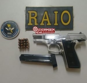 O denunciante relatou para o RAIO que no dia anterior o acusado estaria portando essa arma em uma festa que estava havendo no local citado. De posse dessas informações, a Equipe Raio localizou a residência do indivíduo e, ao chegar, foi indagado ao mesmo sobre a arma. De pronto, o acusado informou onde estava guardada e, após vistoria realizada, foi encontrada uma PT-58HC PLUS INOX com 1 carregador alimentado com 16 munições intactas.