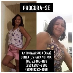 A família pede que quem tiver qualquer informação que possa levar ao paradeiro de Antonia, entre em contato através dos seguintes telefones: (88) 99466-1193, (85) 99961-8303, (88) 99283-4096.