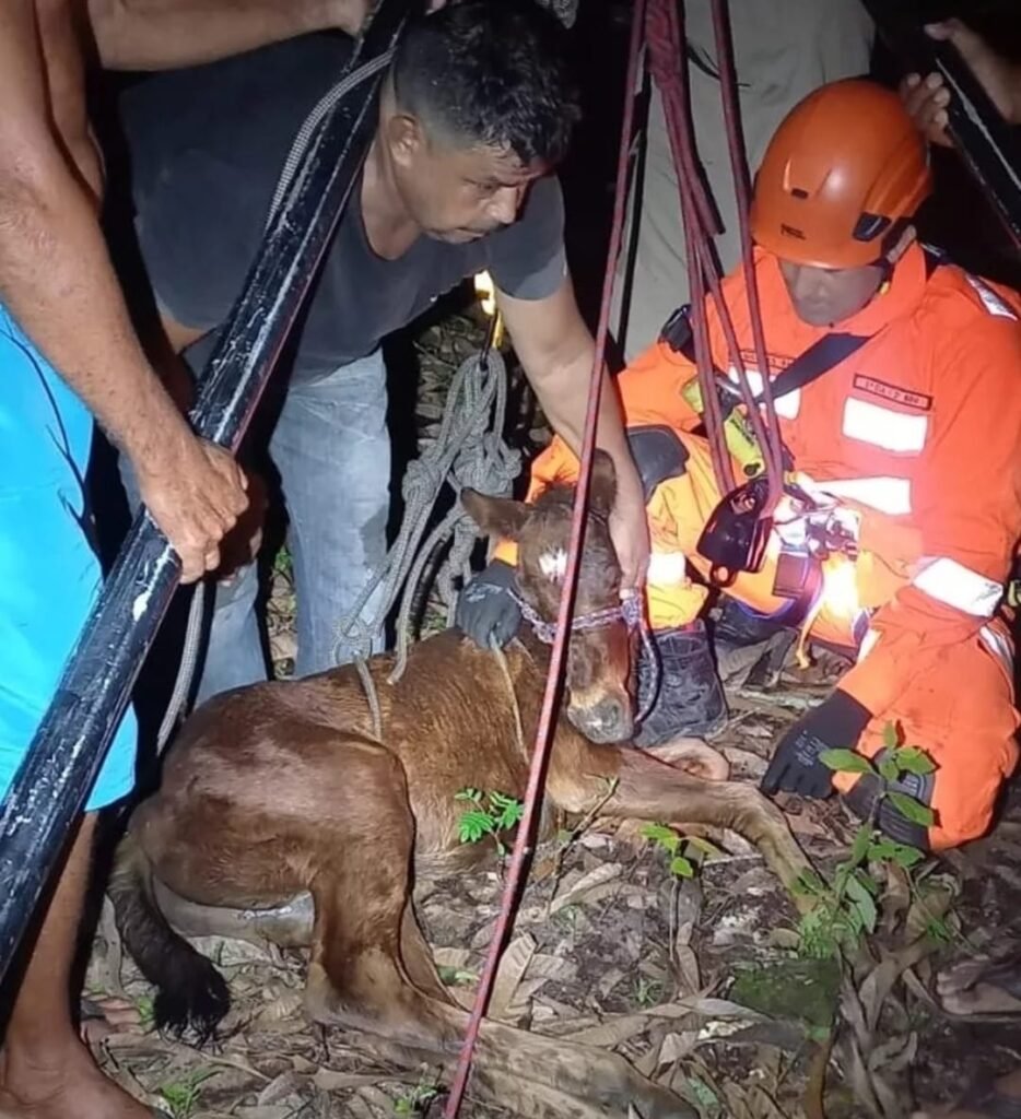 “Chegando ao local, foi constatada a veracidade do fato e que o filhote havia caído pelo espaço da tampa do poço, que se encontra seco. Realizamos o resgate de forma imediata para salvar o animal”, relatou o subtenente Wilkson do Corpo de Bombeiros Militar e comandante do socorro.