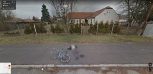 O corpo de um homem caído ao lado de uma bicicleta chama a atenção em uma rua na Hungria. A vítima parece ter caído ou sido atropelada. Os flagras costumam ser amplamente compartilhados nas redes sociais. (Foto: Reprodução)