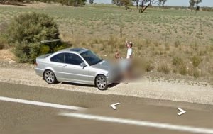 Um casal foi capturado pelo Google Street View enquanto simulava o ato sexual no acostamento da rodovia Dukes, que liga as cidades de Adelaide e Melbourne, na Austrália. (Foto: Reprodução)