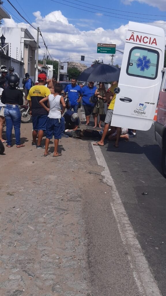 Grave acidente de trânsito envolvendo duas motocicletas na rua Basílio Pinto em Quixadá