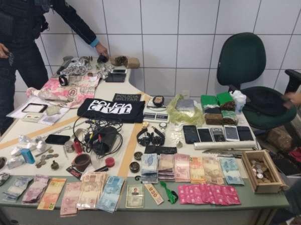 Durante as buscas, os policiais chegaram a uma residência, onde encontraram um revólver calibre 38, com seis munições intactas; 903 gramas de skunk; 1,235 kg de maconha prensada; 770 gramas de pasta base de cocaína; uma quantia em dinheiro; oito aparelhos celulares; três balanças de precisão; materiais utilizados no preparo e no embalo de entorpecentes; uma câmera de vigilância; e dois cadernos com anotações referentes ao tráfico.