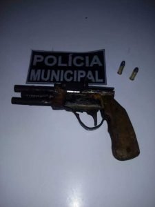 Por volta das 22h00min deste sábado dia 19/01/2019, a equipe da Guarda Civil Municipal foi acionada por populares que informaram que teria um indivíduo embriagado em um bar no distrito de Santa Cruz do Banabuiú (Cruzeta), onde o mesmo fazia gestos e dizia estar armado. A equipe fez deslocamento ao local mas chegando no bar o mesmo já tinha saído, populares informaram que o suspeito estaria bebendo em uma residência próxima, chegando no local a equipe chamou o proprietário, que autorizou a entrada da equipe no local e após buscas localizaram uma arma de fogo calibre .38 de fabricação caseira.