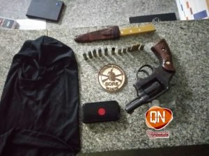 Com o motociclista identificado como José Nobre Nunes, mais conhecido como “Garotinho“, 60 anos, Natural de Quixeramobim, foi encontrado um revólver calibre 38 com 11 munições do mesmo calibre, uma cápsula deflagrada e uma balaclava.