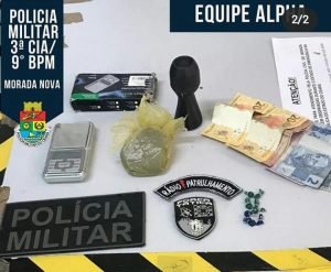Por volta das 09h40min deste sábado dia 04/04/2020, a equipe policial de serviço recebeu uma informação via 190 de que estava acontecendo tráfico de drogas na Rua Raimundo Viana, no Bairro Alto Tiradentes, por um indivíduo conhecido por M. P., que já é conhecido por tráfico. A equipe foi até o local e os PM’s avistaram o elemento em frente à casa denunciada e abordaram o mesmo. Com ele foi encontrado um frasco de perfume e dentro dele 08 unidades de “trouxinhas” de crack, cerca de 1,6 gramas e R$ 69,00 em notas variadas.