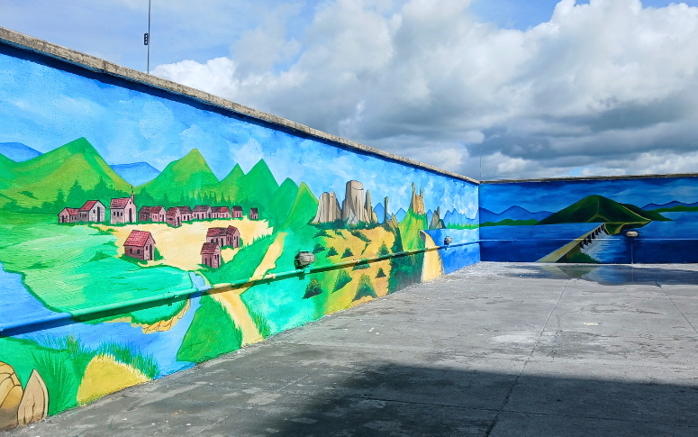 A área externa do terraço do Hospital Regional do Sertão Central (HRSC), unidade da Secretaria da Saúde do Ceará (Sesa) em Quixeramobim, passou a contar com uma pintura de ambientação voltada ao apoio de atividades terapêuticas com pacientes. A intervenção visual foi pensada como recurso complementar no processo de cuidado, favorecendo estímulos visuais de relaxamento.