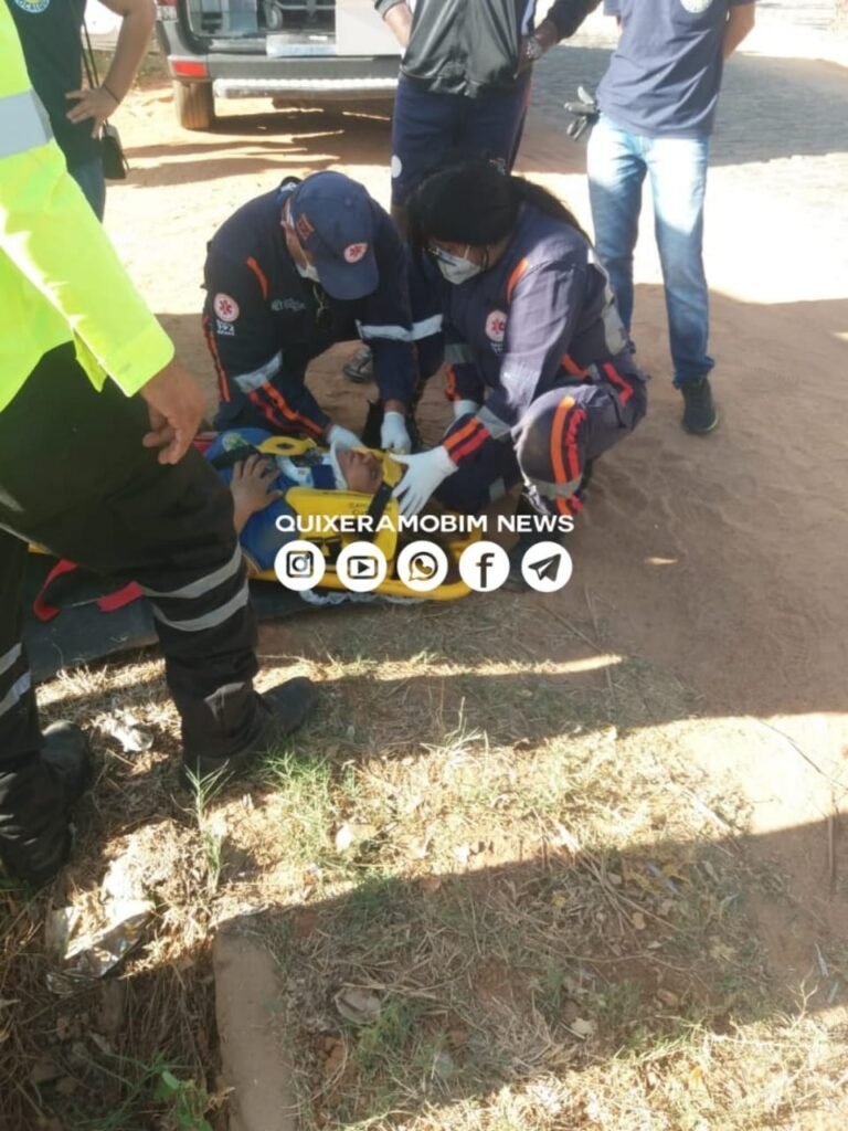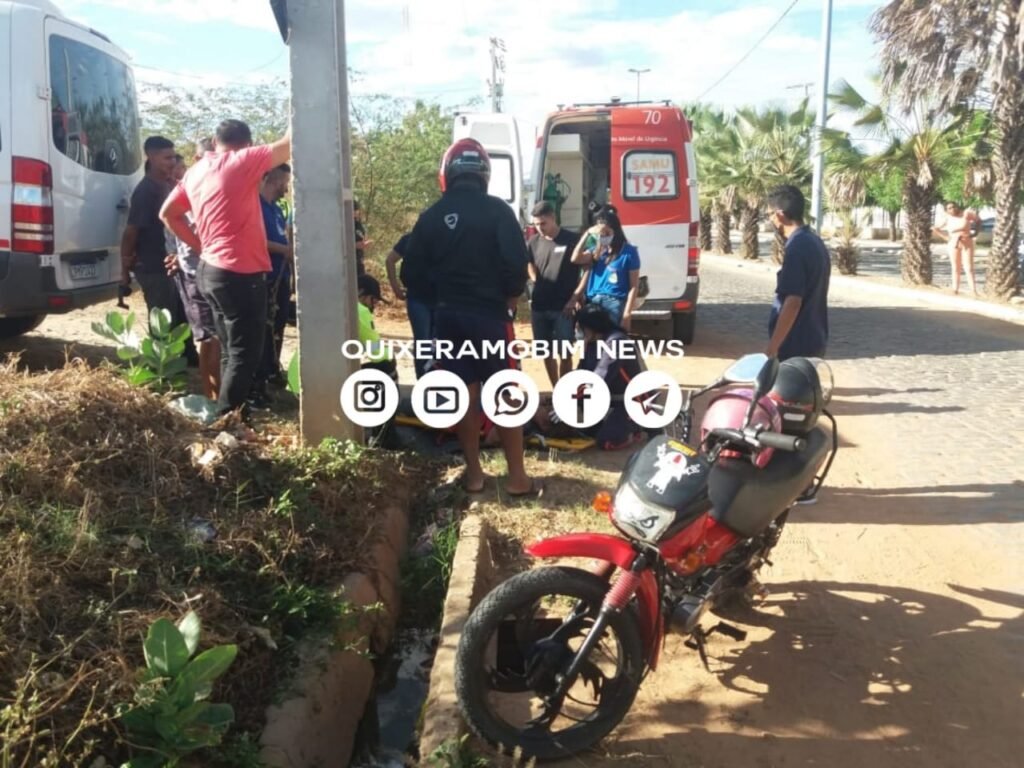 Jovem é socorrida após uma colisão de trânsito em Quixeramobim