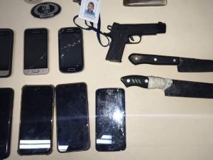 A Polícia recuperou os celulares dos passageiros e apreendeu as armas dos ladrões.