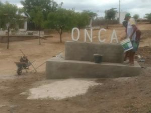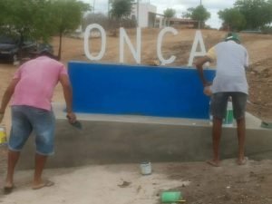 Moradores restauram letreiro após ser danificado na comunidade Onça, zona rural de Quixeramobim