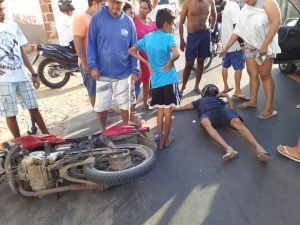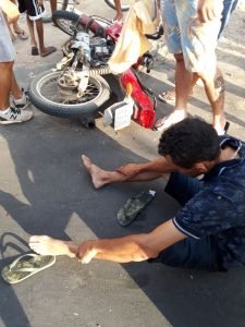 A vítima conhecido como Alex, que seguia na motocicleta YBR125k de cor vermelha e placa OCO 1835 foi socorrida para o Hospital Dr. Pontes Neto pelo motorista do carro com várias escoriações pelo corpo e passa bem.