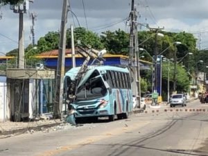 Motorista de ônibus tem mal súbito e bate veículo em poste no bairro Vila Peri em Fortaleza