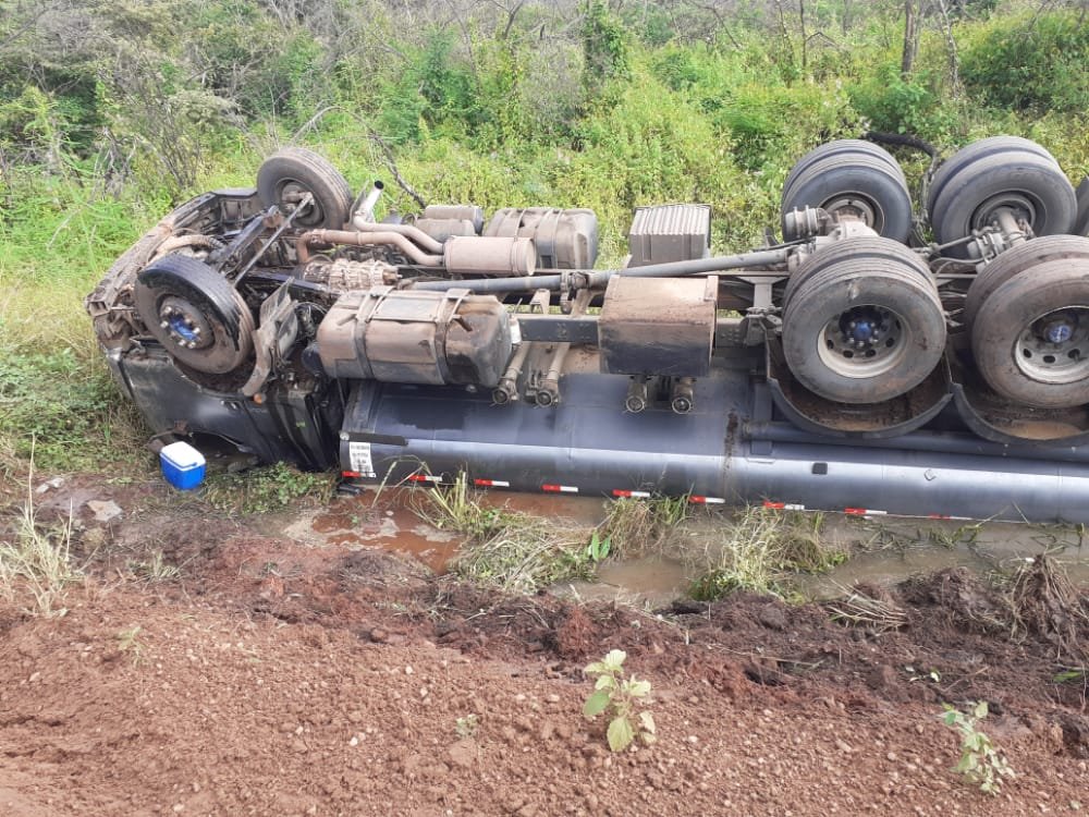 As péssimas condições de tráfego na BR-122 entre os municípios de Quixadá e Ibaretama causou mais um acidente. Recentemente um ônibus da empresa da Guanabara acabou saindo da pista após o motorista tentar desviar dos buracos que tomam conta da rodovia, já na manhã desse sábado (07) o incidente foi ainda mais grave e um caminhão tanque carregado de combustível acabou capotando.