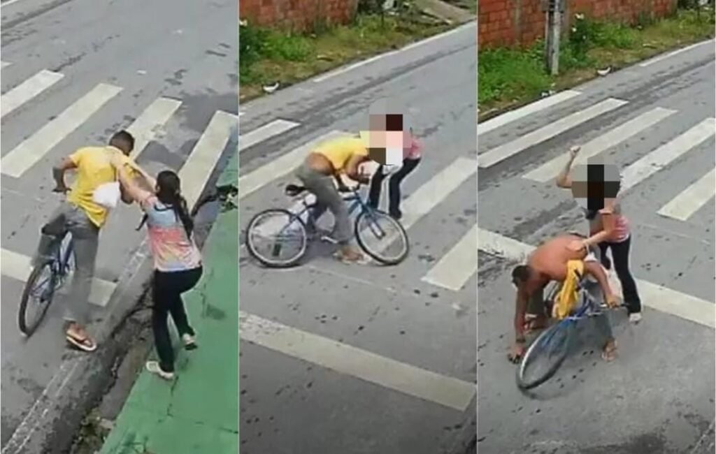 Mulher derruba e agride criminoso de bicicleta para tentar evitar assalto no Ceará